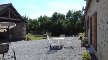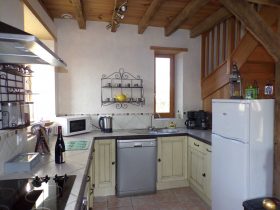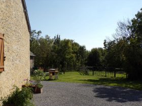 Vue du jardin et patio. Cuisine est bien équipée (lave-vaisselle, micro-onde et machine à café…).